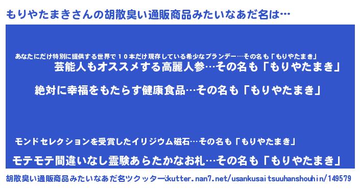 | 意味不明あだ名 | 『永久保存もりやたまき』 |