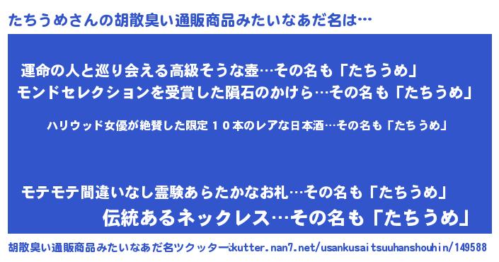 | 意味不明あだ名 | 『住所不定無職たちうめ(68歳)』 |