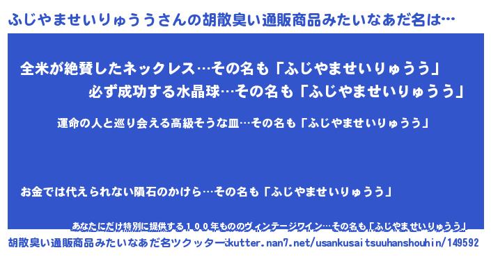 | ファンタジー風あだ名 | 『エターナルフジヤマセイリュウウー』 |