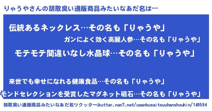 | 意味不明あだ名 | 『ペロリンりゃうや』『自称りゃうや』 |