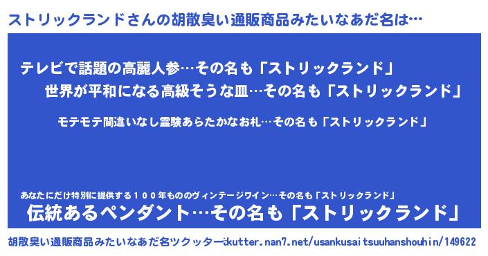 | 意味不明あだ名 | 『ペロリンストリックランド』 |
