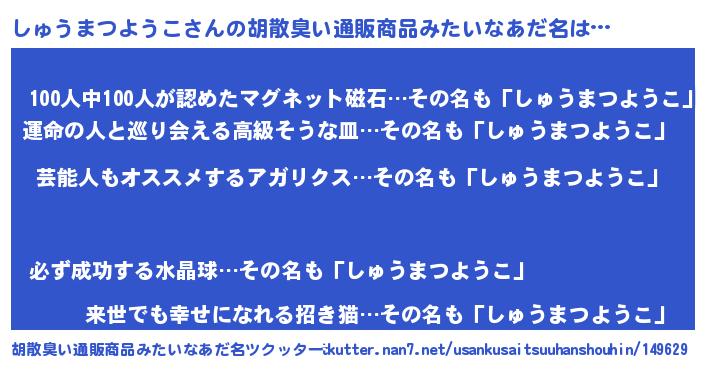 | 恥ずかしいあだ名 | 『シュウマツヨウコデラックス』 |
