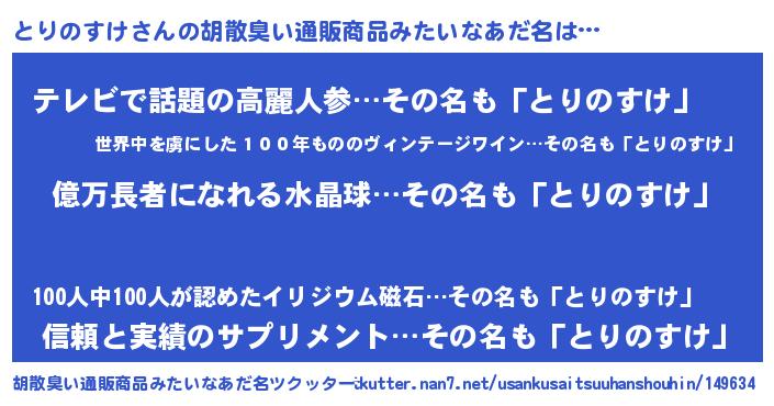 | 意味不明あだ名 | 『ペロリンとりのすけ』『自称とりのすけ』 |
