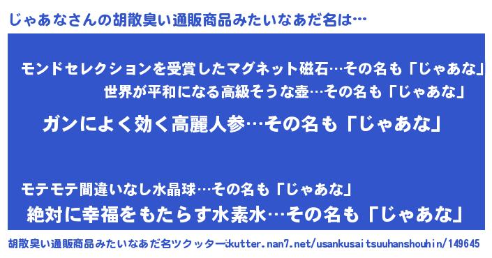 | 恥ずかしいあだ名 | 『ジャアナデラックス』『じゃちん』 |