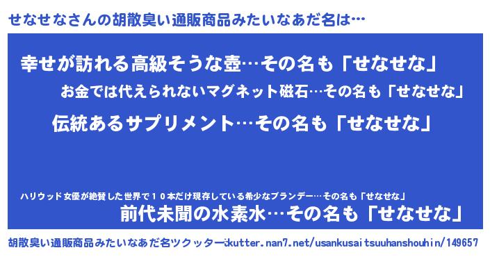 | 意味不明あだ名 | 『とにかく怪しいせなせな』 |
