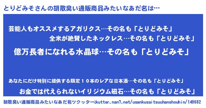 | 意味不明あだ名 | 『ペロリンとりどみそ』『自称とりどみそ』 |