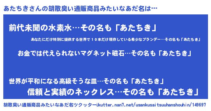 | ヘコむあだ名 | 『あたちき(笑)』『あたぷりん』 |