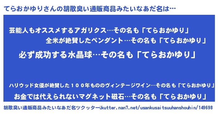 | 恥ずかしいあだ名 | 『プリティーてらおかゆり』『てらっちょ』 |