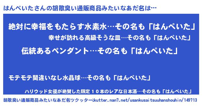 | 意味不明あだ名 | 『とにかく怪しいはんぺいた』 |
