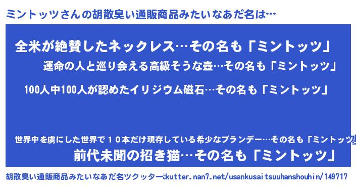 | ヘコむあだ名 | 『ミンっ子』『ミントッツ(苦笑)』 |