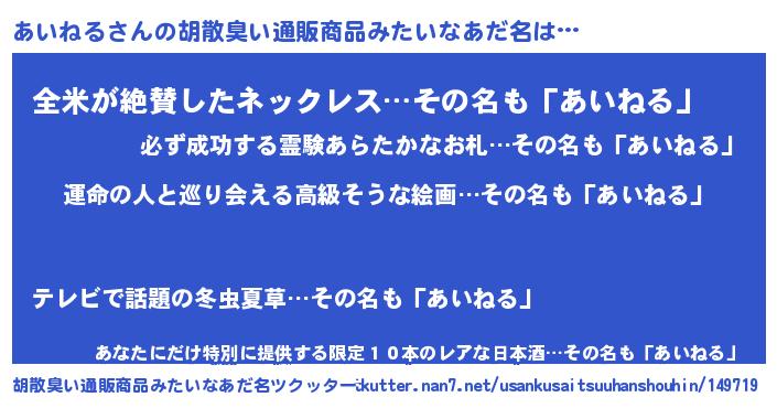 | 肩書あだ名 | 『あいねる総理大臣』『あいねる班長』 |