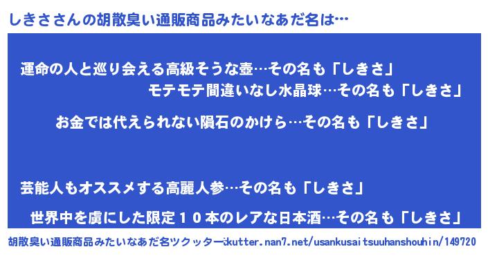 | ヒーロー風カッコイイあだ名 | 『愛の使者しきさ』『ウルトラしきさマン』 |