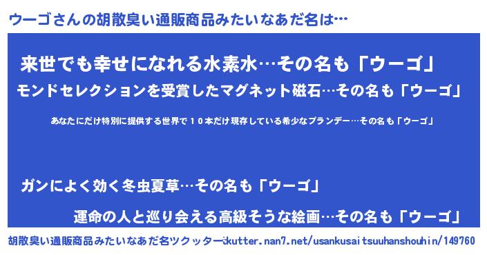 | ヘコむあだ名 | 『ウーゴ(苦笑)』『豆乳』『ウーにー』 |