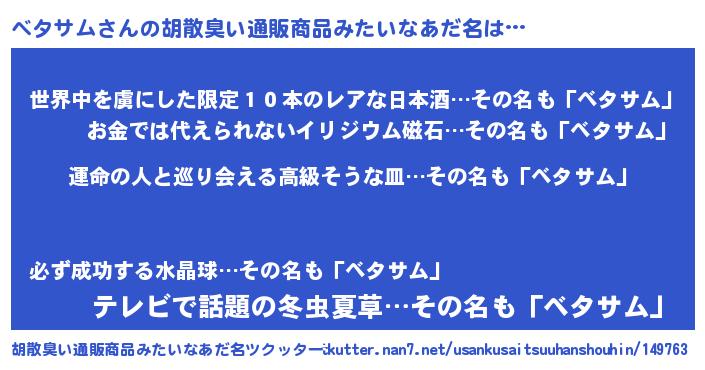 | ヒーロー風カッコイイあだ名 | 『ウルトラベタサムマン』『仮面ベタダー』 |