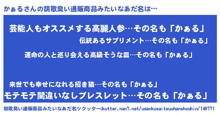 | ヘコむあだ名 | 『レバニラ』『かぁにー』『かぁ太郎』 |