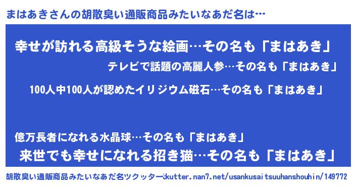 | ヘコむあだ名 | 『牛乳』『まはあき(笑)』『まはを』 |