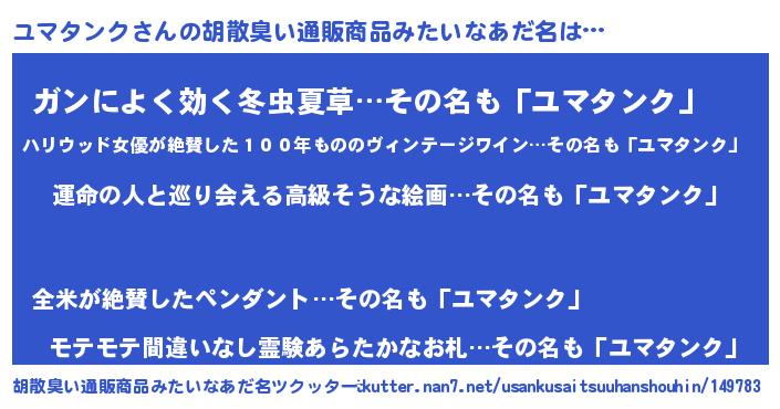 | 意味不明あだ名 | 『ユマタンクフォーエバー』 |