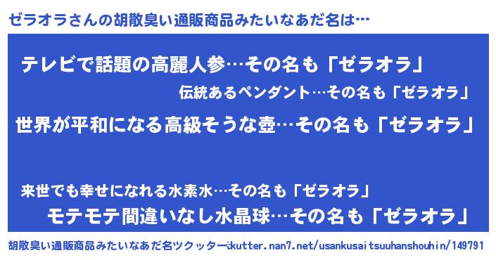 | ヘコむあだ名 | 『なまこ酢』『ゼラにー』『ゼラ太郎』 |