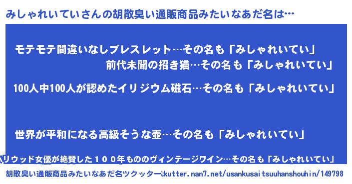 ヘコむあだ名 | 『みしふぇ~』『みしゃれいてい(苦笑)』 |
