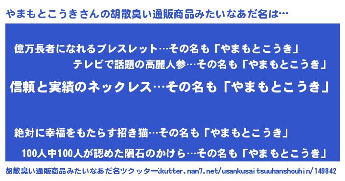 | 男性向けラノベタイトル風あだ名 | 『ダンジョンにやまもとこうきを求めるのは間違っているだろうか』 |