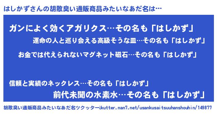 | ヘコむあだ名 | 『はしかず(小並感)』『牛乳』 |
