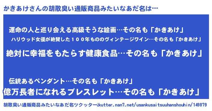 | ヘコむあだ名 | 『かきあけ(笑)』『豆乳』『かき太郎』 |