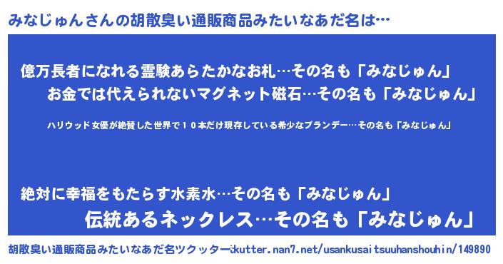 | 意味不明あだ名 | 『住所不定無職みなじゅん(91歳)』 |