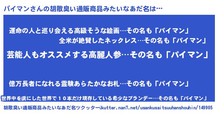 | 意味不明あだ名 | 『自称パイマン』『ヨモギ科パイマン属』 |