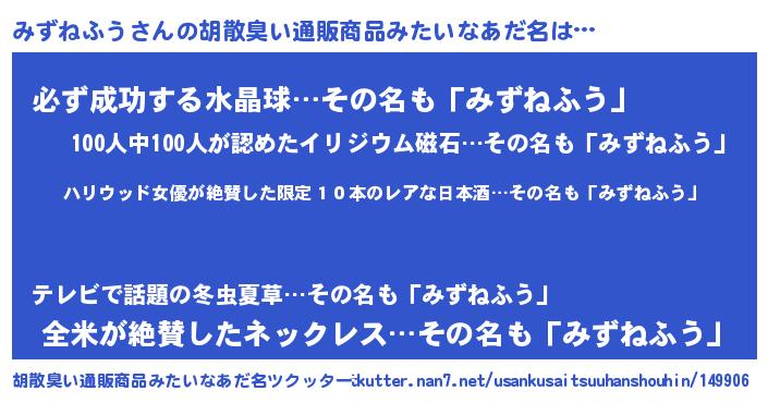 | 意味不明あだ名 | 『住所不定無職みずねふう(53歳)』 |