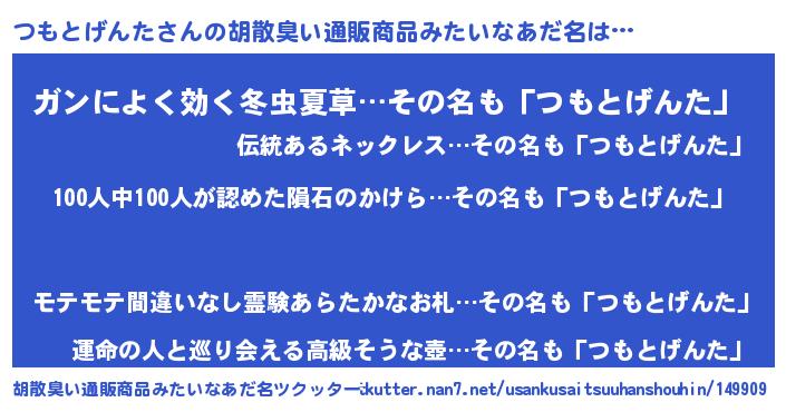 | 男性向けラノベタイトル風あだ名 | 『おまえをオタクにしてやるから、俺をつもとげんたにしてくれ! 』 |