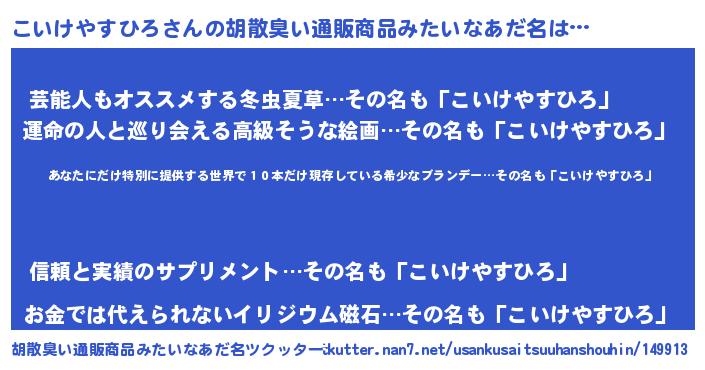 | 欧米人風あだ名 | 『ダレノガレこいけやすひろ』 |