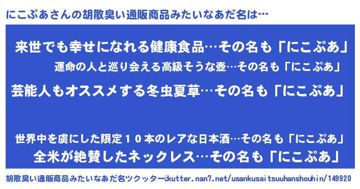 | ヒーロー風カッコイイあだ名 | 『最強戦士ニコプア』『ネオニコプア』 |