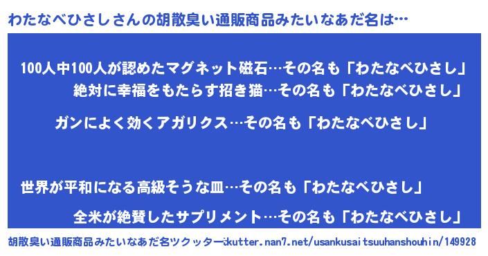 | ヘコむあだ名 | 『わたっぺ』『わたなべひさし(笑)』 |