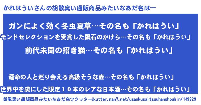 | 意味不明あだ名 | 『永久保存かれはうい』『自称かれはうい』 |