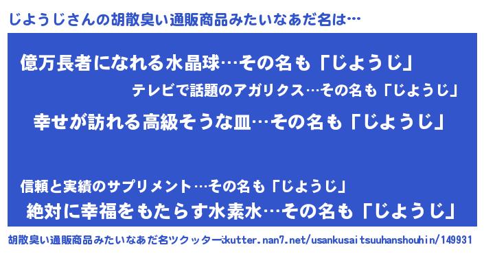 | 意味不明あだ名 | 『じようじフォーエバー』『自称じようじ』 |