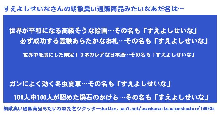 | ヘコむあだ名 | 『なまこ酢』『すえっふぃ~』 |