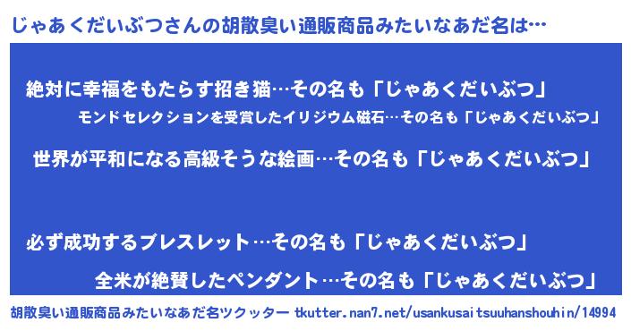 | ヘコむあだ名 | 『なまこ酢』『じゃあくだいぶつ(笑)』 |