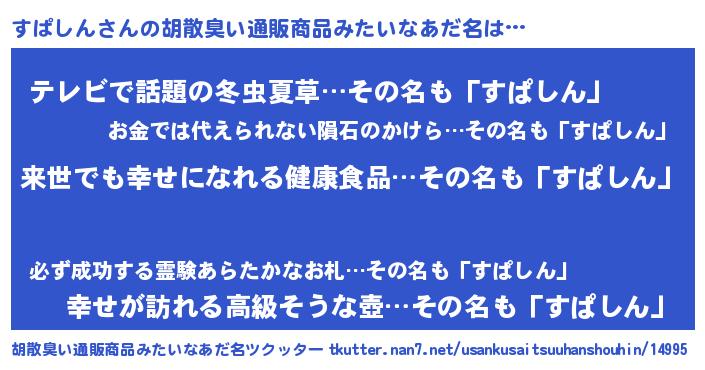 | 意味不明あだ名 | 『永久保存すぱしん』『自称すぱしん』 |