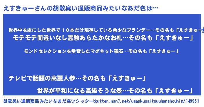 えすきゅーさんの胡散臭い通販商品みたいなあだ名をツクッター!
