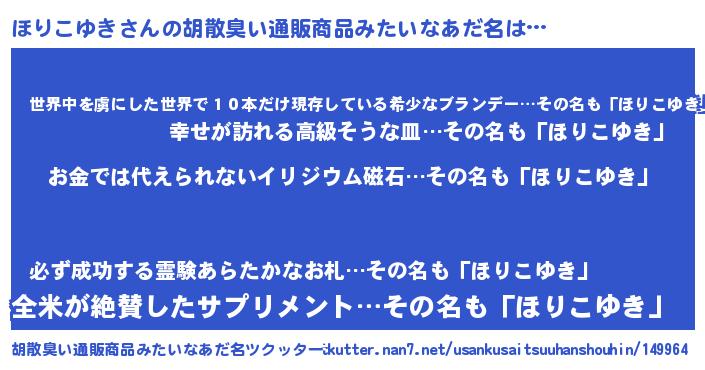 | 女子向けラノベタイトル風あだ名 | 『ほりこゆき恋絵巻』 |