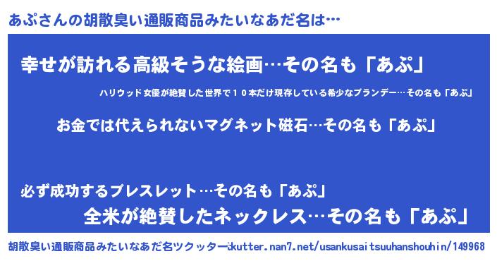 | ヘコむあだ名 | 『豆乳』『あぷっ子』『あぷにー』 |
