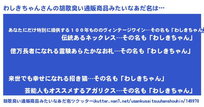 | ヒーロー風カッコイイあだ名 | 『スーパーワシキチャン』『仮面ワシダー』 |