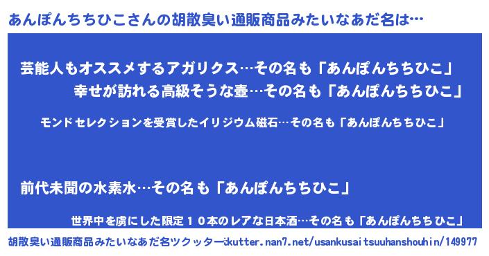 | 伝説のあだ名 | 『救世主となる占い師あんぽんちちひこ』 |