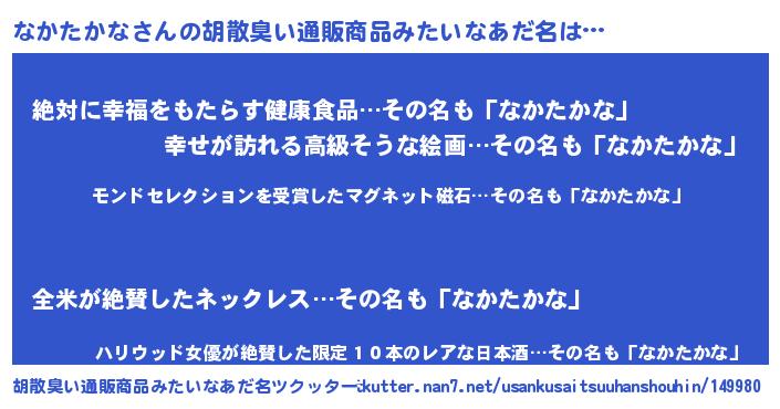 | ヘコむあだ名 | 『なかたかな(小並感)』『牛乳』 |
