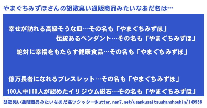 | 意味不明あだ名 | 『永久保存やまぐちみずほ』 |