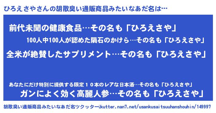| ヘコむあだ名 | 『ひろお』『ひろえさや(爆)』『牛乳』 |
