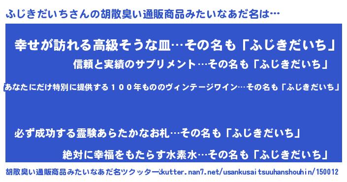 | 男性向けラノベタイトル風あだ名 | 『うちのふじきだいちが世界を掌握している!』 |