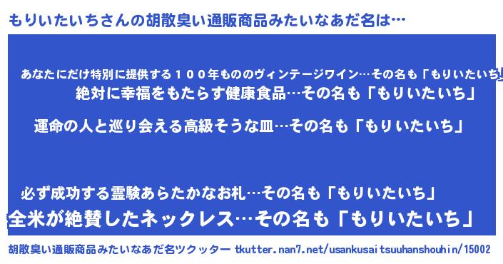 | 肩書あだ名 | 『もりいたいち上級大将』 |