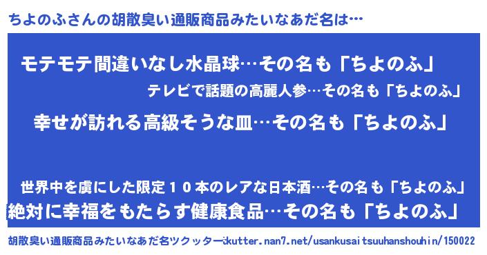 | 意味不明あだ名 | 『ちよのふフォーエバー』『自称ちよのふ』 |