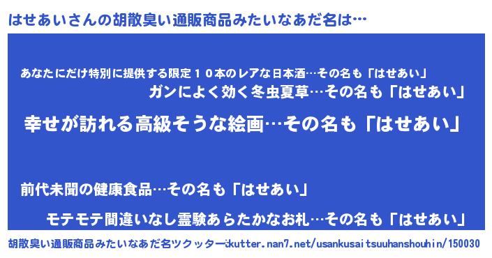 | 2回繰り返すあだ名 | 『ははせせ』『しわしわ』『はせはせ』 |
